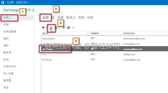 对于现有的Exchange邮箱收件人来讲,可以通过修改其属性的方式来进行维护管理。比如修改邮箱容量、邮件转发、相关的用户属性等等。可以通过EAC轻松的对邮箱收件人的这些内容进行相应的配置,而且还支持同时选中多用户进行更改设置。