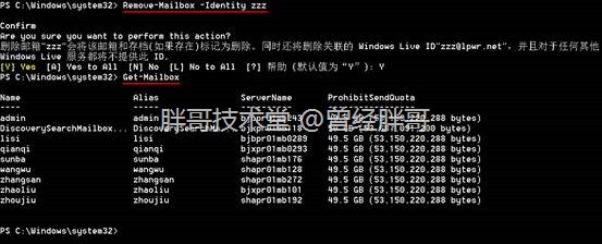 然后,使用Remove-Mailbox命令删除指定的用户账户。